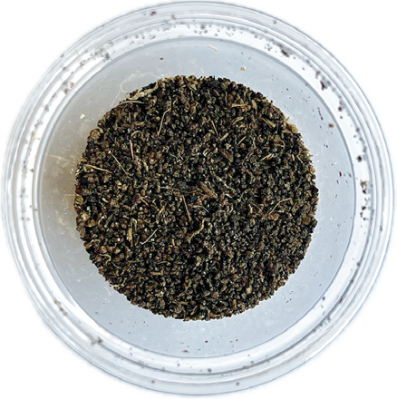 乾燥幼虫を粉砕した飼料です。こちらも長期保存が可能で、細かいため、小さな個体でも食べやすくなっています。